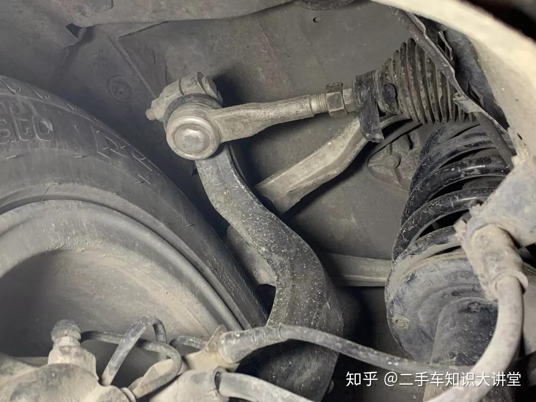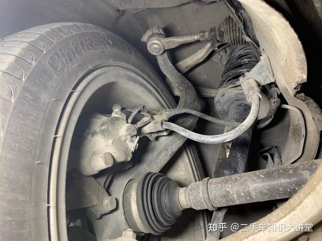 一般的车,转向拉杆都是在羊角上,位置大概在下摆臂附近。但帕萨特领驭的转向拉杆,是在悬架上支臂附近,隐藏在轮拱里,你都不用升起底盘才能看见,只要蹲下来往前轮轮拱内一看,便能看到。