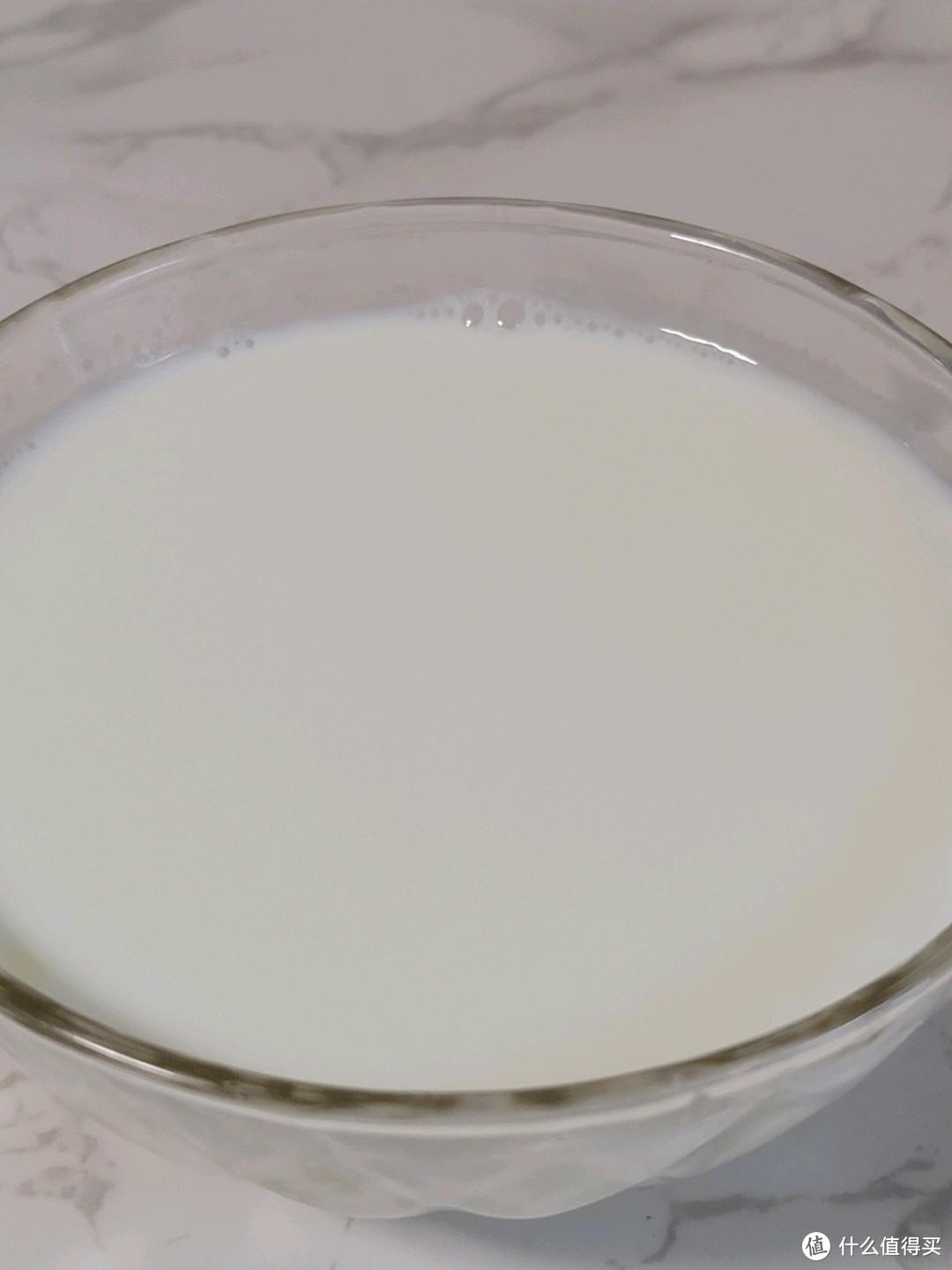 试喝感受:喝起来有那种稀溜稀溜的感觉,入口不是那么的浓郁,但是能够尝到那种特别自然醇厚的牛奶的味道,我不知道怎么形容这个味道,就是说很新鲜,就像喝一口鲜牛奶的感觉。没有其他的杂味,喝起来比较顺口,但是呢甜度稍低口感偏淡。但是奶皮结的很快,很有意思。