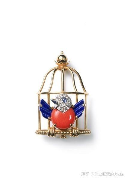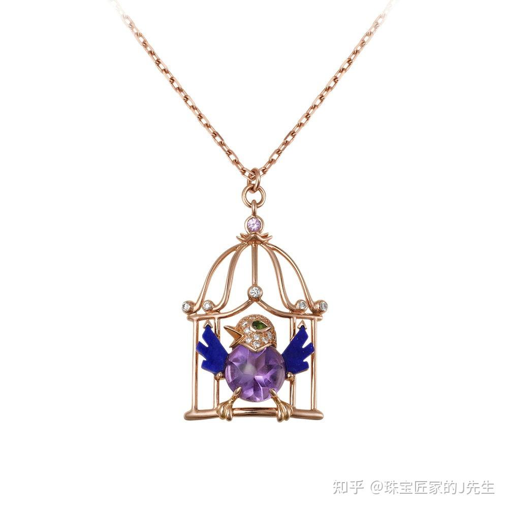 上面的紫水晶小鸟吊坠,设计源自Cartier1944年的“自由鸟”胸针。