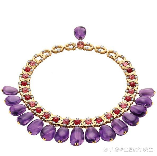 项链以紫水晶为主石镶嵌,点缀绿松石、钻石,专为辛普森夫人设计。