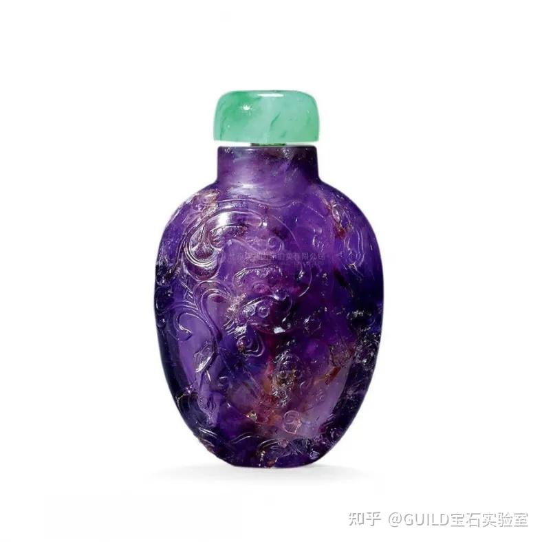 紫水晶雕螭龙纹配翡翠盖鼻烟壶