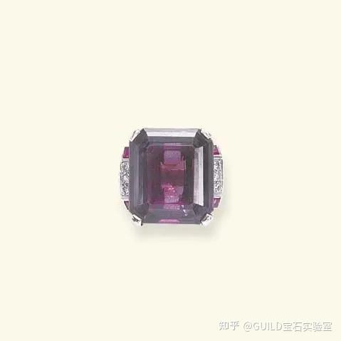 紫水晶(图源GIA官网)紫水晶颜色分布不均匀,常表现为弱至明显,呈红紫色和紫色的二色性,因为紫水晶的颜色源于空穴色心致色,长时间的日光辐射可能会让空穴色心产生变化,紫色水晶有褪色的风险。