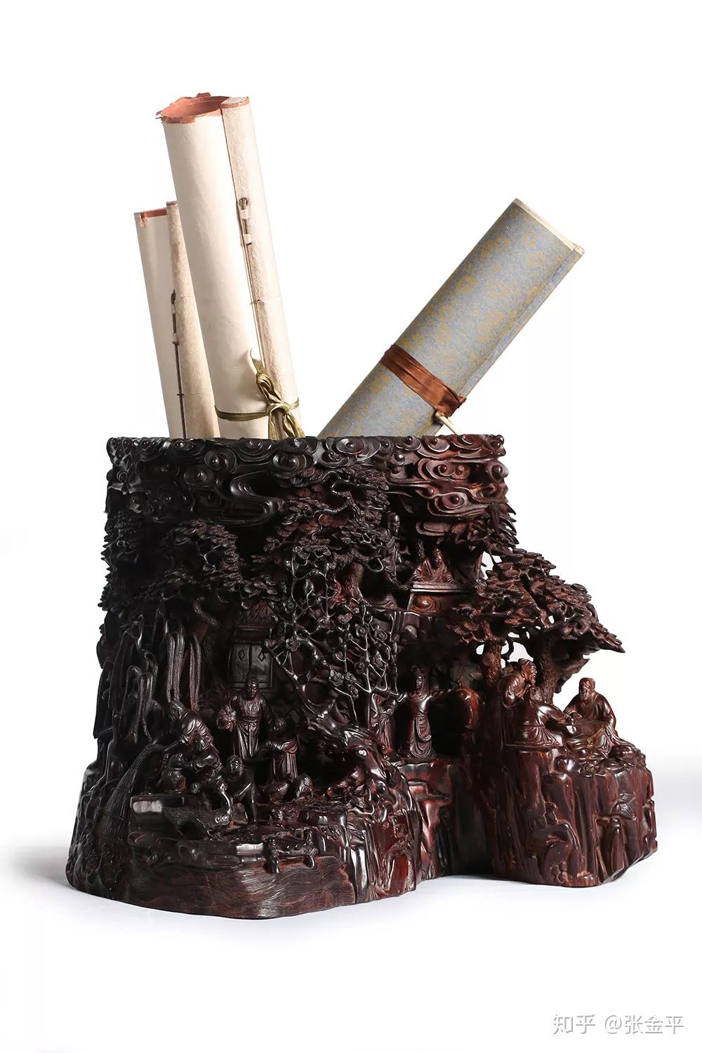 又如木雕作品《华夏文明·笔筒》,更是将“渔樵耕读、琴棋书画”的主题,通过同时使用几乎所有的传统木雕技法来表达,这样顶尖的技术仅此可见。