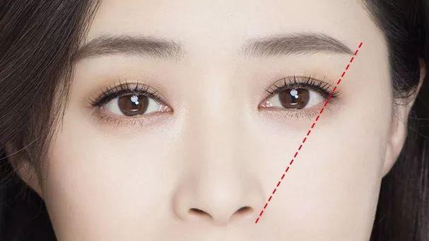 眉尾在哪里结束:常规的眉尾是取决于鼻眼角的三点一线那个位置,普通脸型就用这个方式就好了。