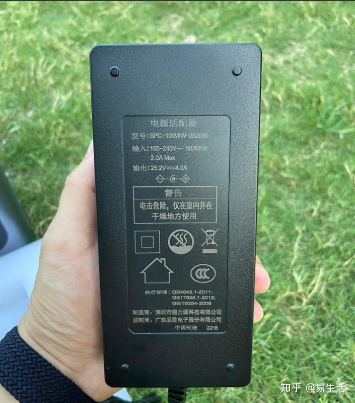 寄来的配件中还有一个大功率的快充电源,输出功率25V4A这样准备出门的时候随便充个一两小时就可以了。