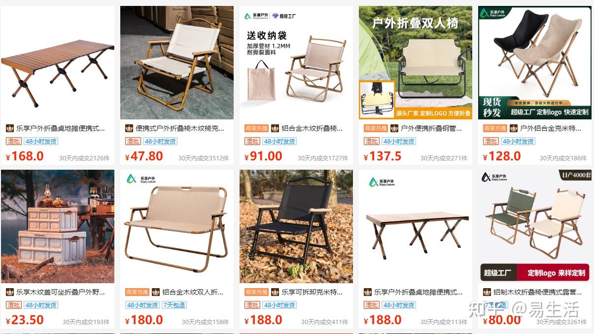 户外桌方便我们在外面摆放食物,在拍照的时候也会显得精致好看,椅子也是非常实用的工具和拍照道具,这种户外椅子也叫导演椅或垂钓椅,足以见得用途之广,一般有个品牌的就卖200多,贴上名牌更是高达500多,而这家工厂只要100多。