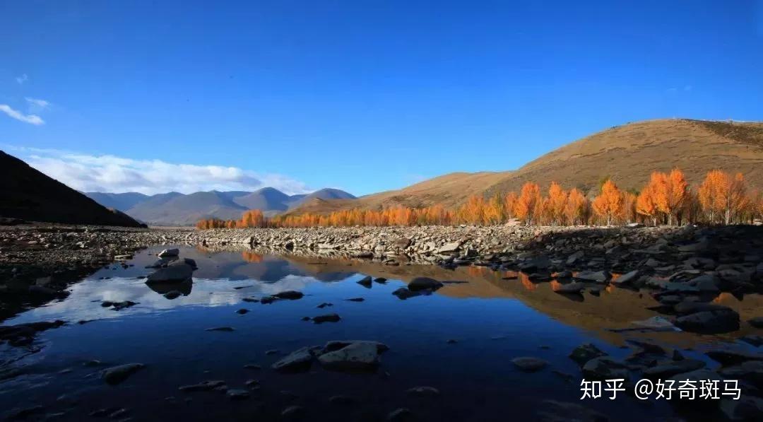 飞过白云间的苍鹰,风格独特的藏乡建筑,深红的沼泽,波光粼粼的小河……目光所及之处,都宛如一幅油画。