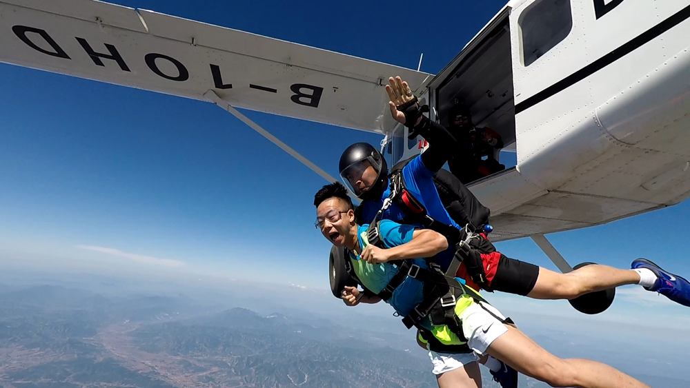 保持和教练的良好沟通。你有任何的需求都要和他们讲,比如你想和他合照,或者你想在空中多呆一会,教练人很好的,只不过他们一天都要跳好几次,都已经很模版化了,难免帮你想的不周全。