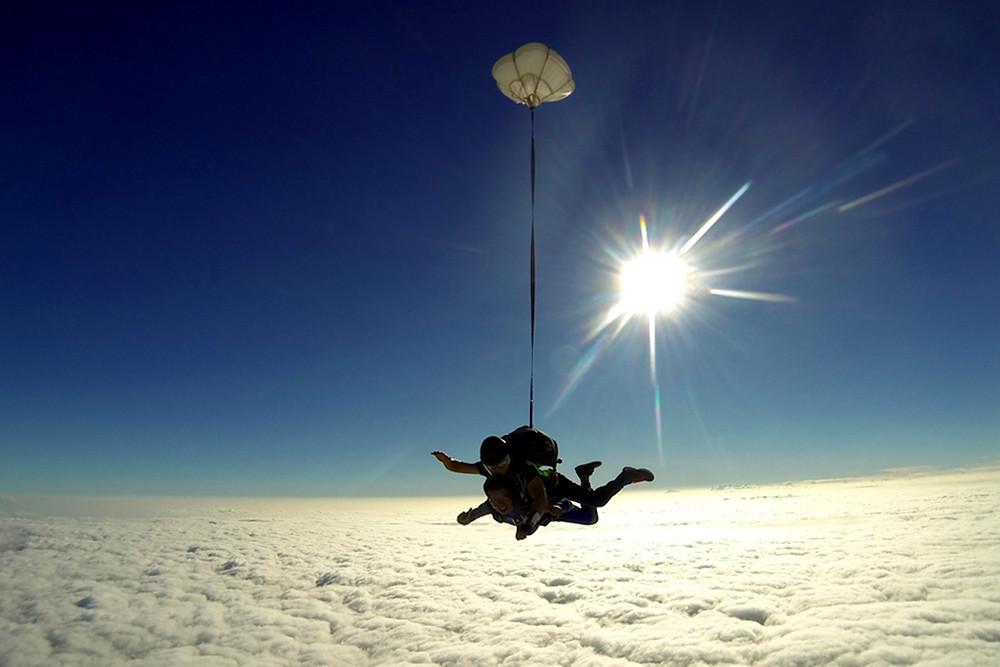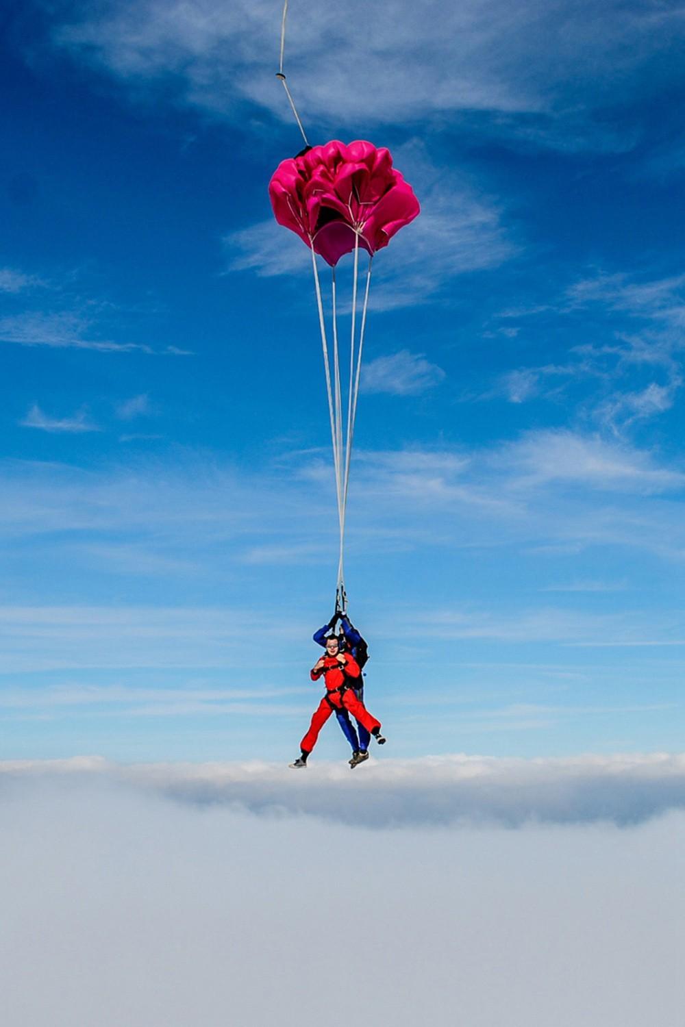 说人跳伞真的是令人难以置信的简单和安全,舱门打开的瞬间跟随教练在梦幻得云层一跃而下,50秒的自由落体体验极速下落,时速高达200公里。