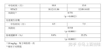 在5-FU/LV方案中加入贝伐珠单抗5mg/kg,每2周给yao一次,与单纯5-FU/LV化疗对照组相比较,客观缓解率提高,无进展生存期明显延长,而且生存期具有延长的趋势。