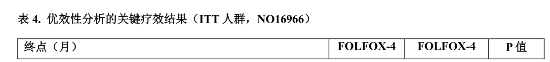 表4.优效性分析的关键疗效结果(ITT人群,NO16966)