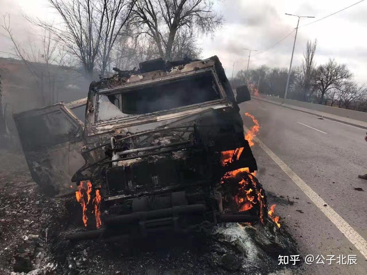 在乌克兰南部的梅利托波尔市,一位遛狗的市民拍摄到乌军一辆 *** R-4被完全摧毁。