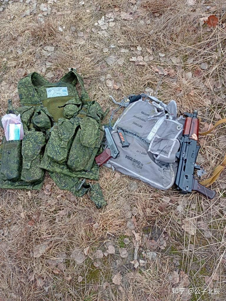 乌军又击落了一架俄军苏-25攻击机,该机机尾有数字编号04,飞行员已经死亡,图二中可以看到他配备了马卡洛夫手*和AKS-74U各一把作为自卫武器(这自卫火力算是很凶猛了)。
