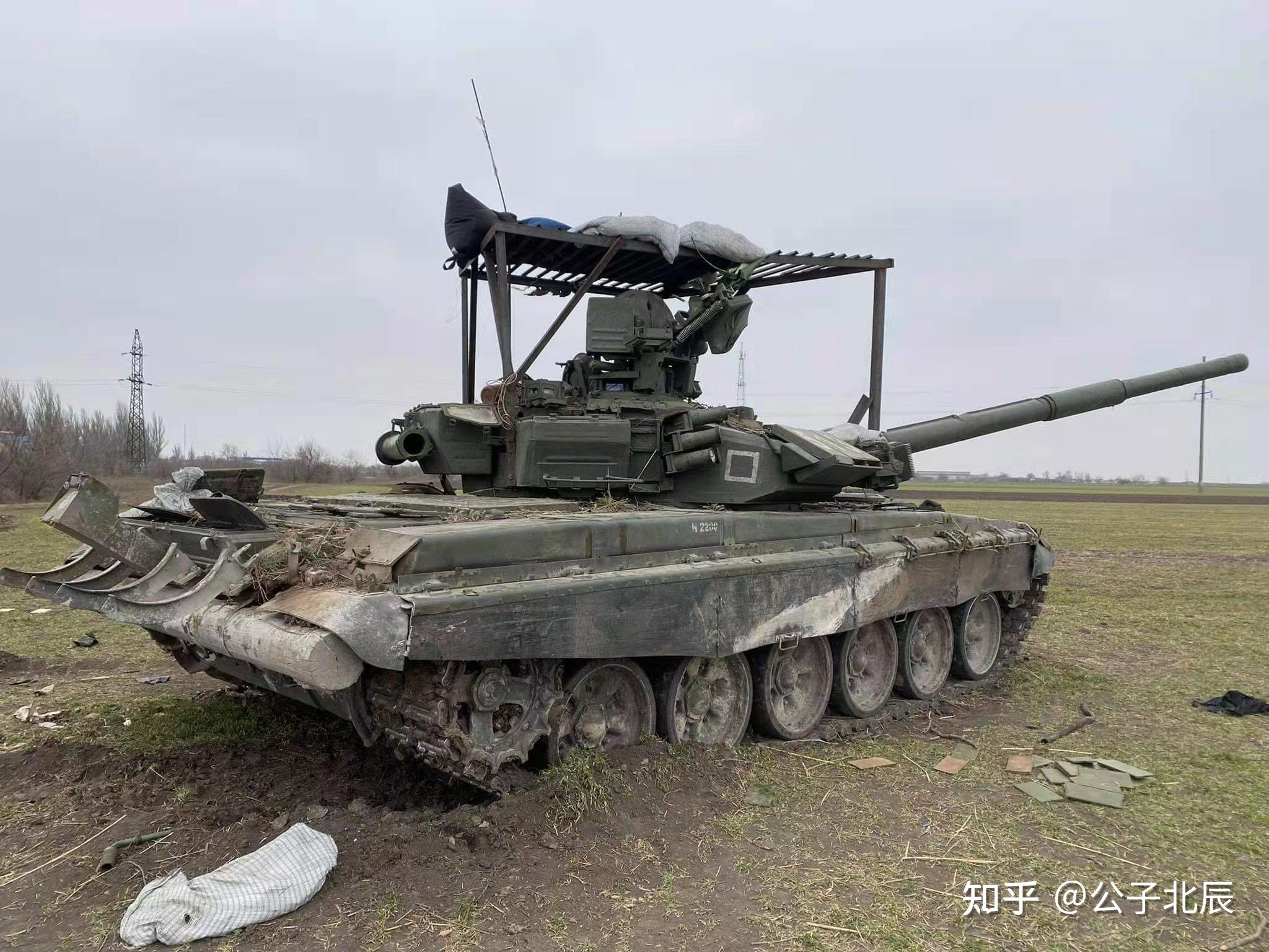 编号516和513两辆俄军T-90A在乌克兰南部被乌军缴获,它们都加装了顶棚且用沙袋加强防御。