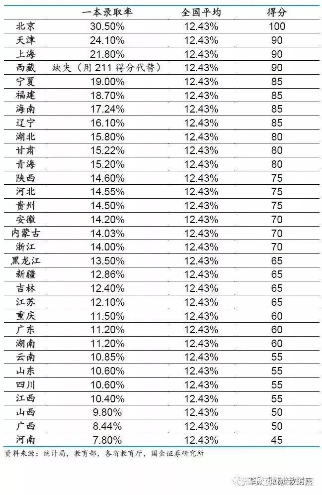 录取率是一个相当可测可比的指标,和人口和录取数量都有关,因为现行高考体制其实本质上是省内竞争,即不同的学校对不同的地区其实是有招生指标的,故若一个地区好学校录取率低,则反映这个地区高考竞争激烈程度高。我们认为用录取率来衡量高考激烈程度,是比用“高考人数”和“录取人数”更优的。不管该地区好学校多寡,人口多寡,录取率总是一个比较客观可比的因素,我好学校少,但985整体录取率(考取率)高也行啊,我人少,但是别的学校给我们名额也相对更少,也没用,所以“录取率”是更客观可比的指标。