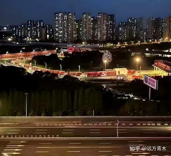 上海市的万家灯火外面,是空空荡荡的高速公路,然后红色的京东物流车队连成长龙,义无反顾的冲进了上海。