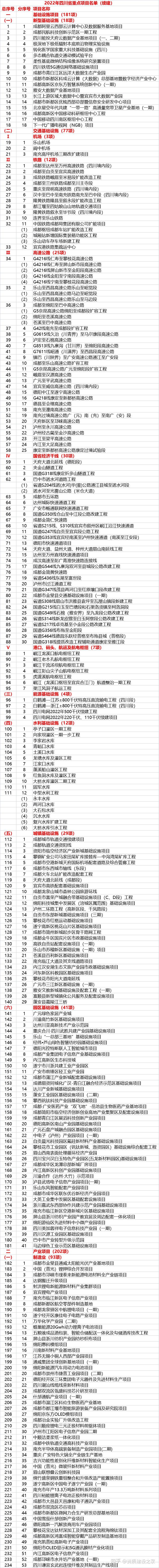 2022年四川省共有700个项目纳入名单,包括新开工项目246项、续建项目454项。其中,基础设施项目269个。