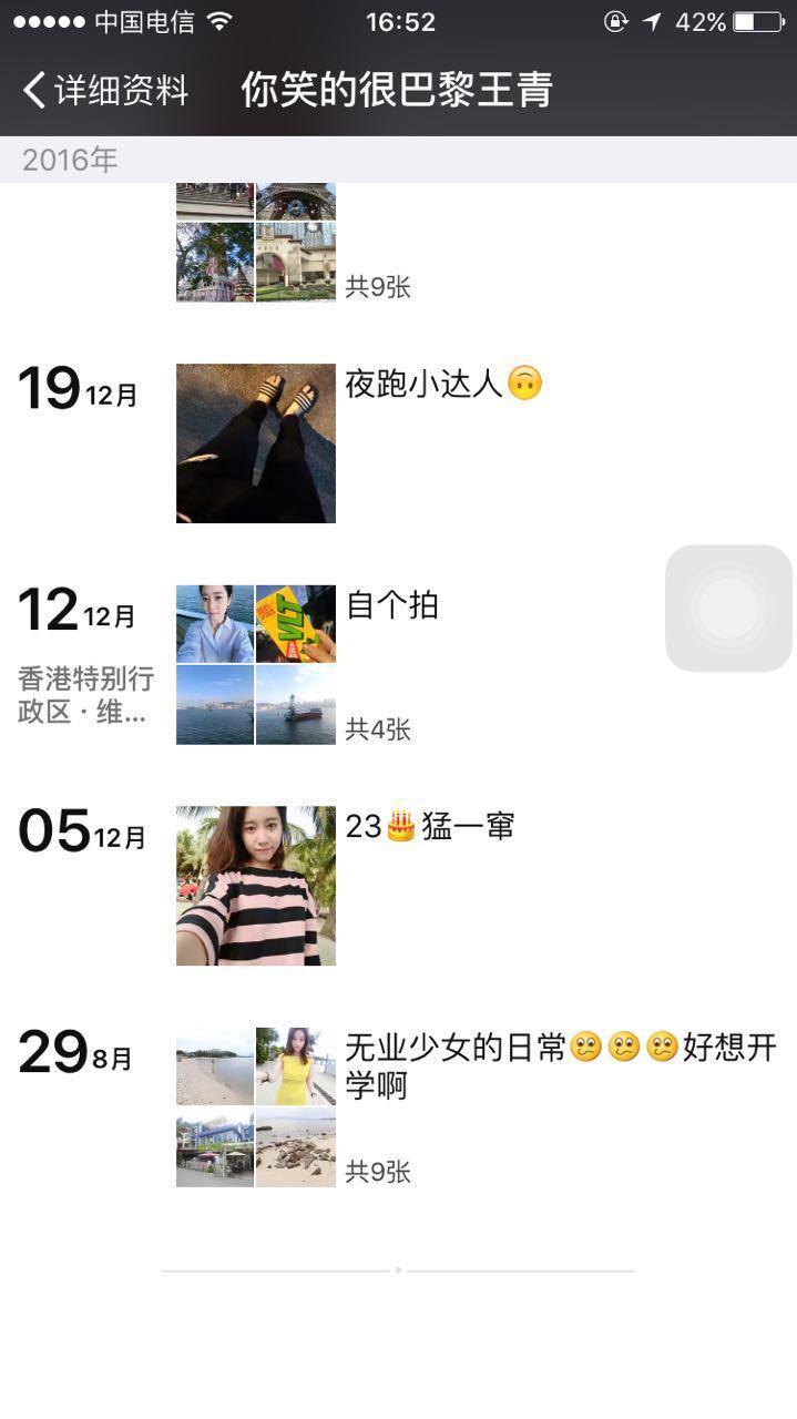 这是我在她朋友圈找到的照片,我很确定这个人就是她本人。她至少有两个微信号甚至更多。
