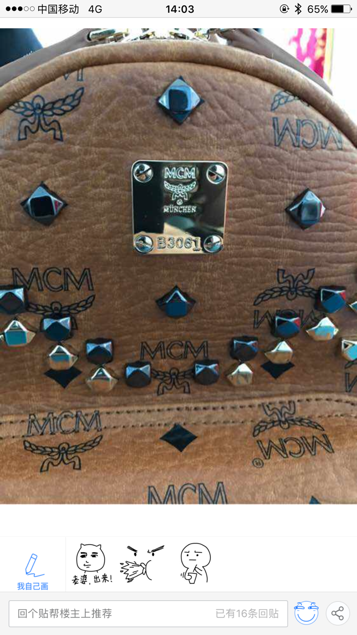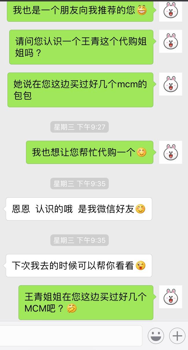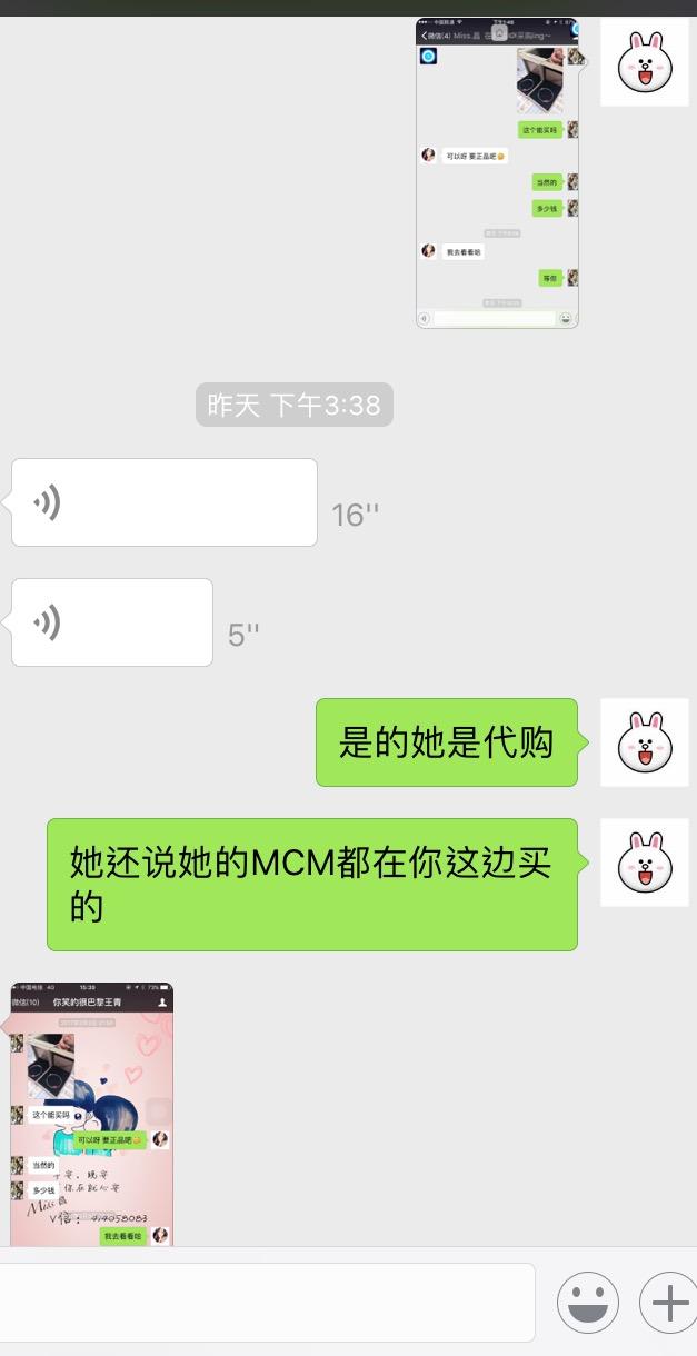 寒假开始之前我跟她买MCM包包,陆陆续续跟她买了钱包,邮差包和两个M钉双肩包,收到之后也没有看真假,一直很信任也没觉得假。