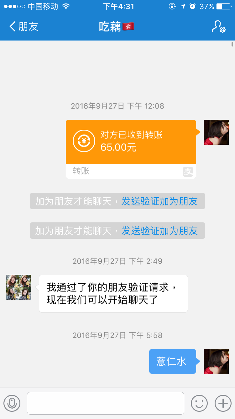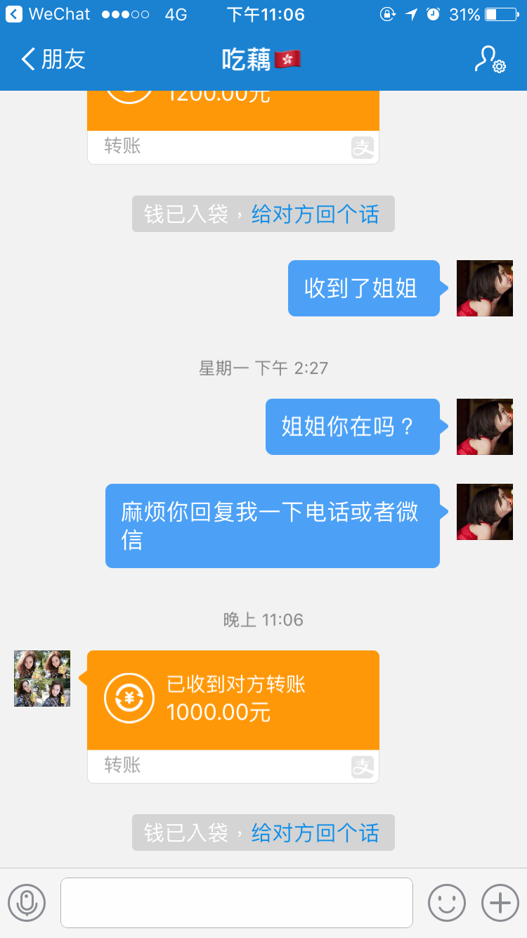 就在我以为我没法拿回那一千块钱的时候!她把钱转回来了!