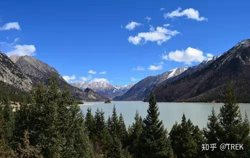 k4260附近的尼洋河在身边静静流淌,相对于前面见过波涛汹涌的帕隆藏布,简直可用恬静来形容她。水很干净,呈现出透明的绿色。难道真是传说中神女的眼泪汇成的吗?河里有很多沙洲,树就直接生在水中,一派高原湿地的风格。
