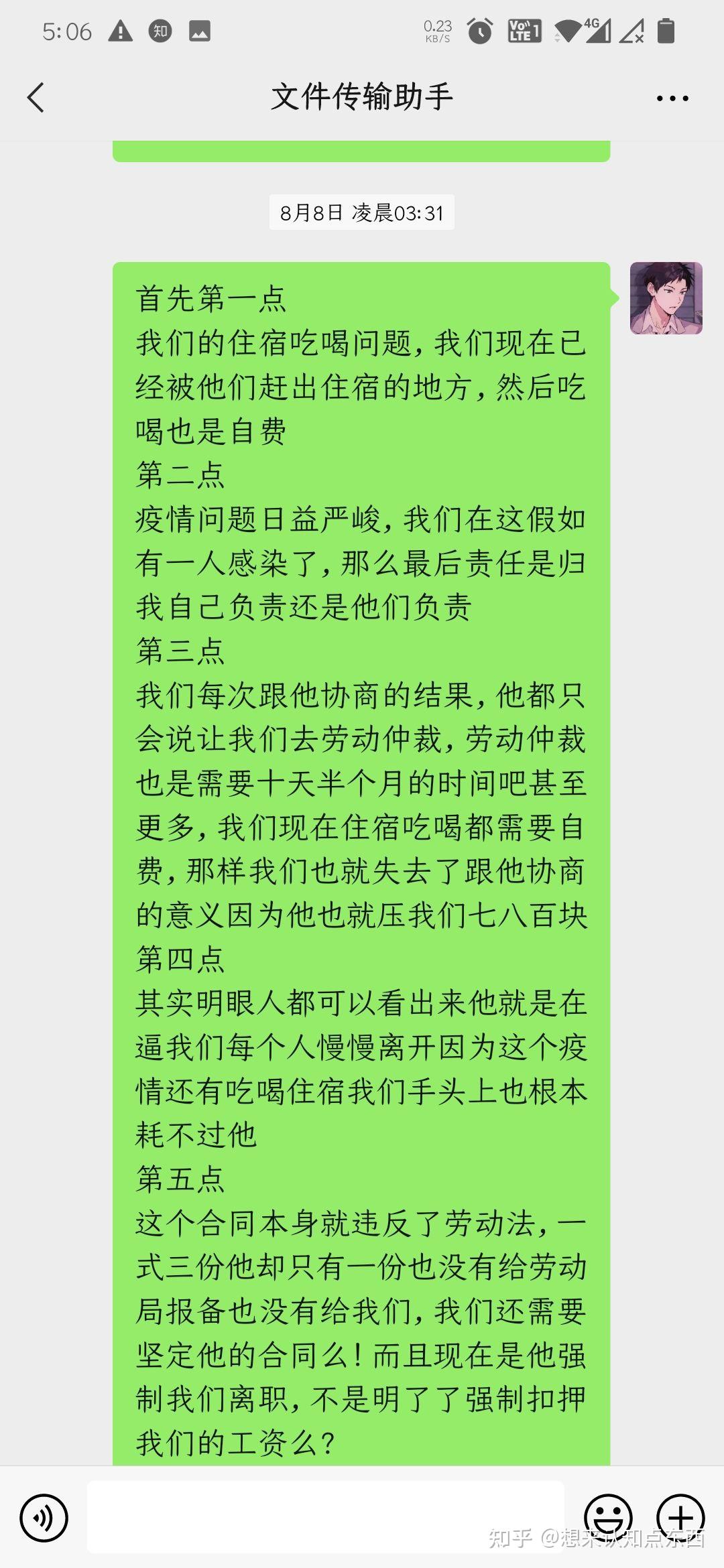 第二天直接去上夜班,乘坐一辆面包车大概挤了有20多个人,就是脚挨脚那样,到地方是郑州航空港区极兔快递老厂,干的是装车的工作就是几个人装一卡车的快递,不停的装,那天晚上真是难熬,浑身都湿透了,工作了8个小时,就那样熬过去了,清晨又是面包车给我们拉回去了,睡醒后下午问我们能不能干这份工作,不能干就可以走人了,我们为了挣钱,想着吃吃苦可以的,就随即让我们签了一份合同(现在想想真不应该签,里面所有的一切都是甲方决定,而且合同只有在他那的一份合同,合同上15块一小时,每天按10块小时结算,干满一个月后再另算其他的,签合同是他说的都是每天8-10个小时),刚开始前几天还能上到8个小时,但干过几天之后他又把我们拉到另外的一个地方-郑州润之新物流园,工作也是一样只有装车,而且这儿的快递都是大包,很累,而且每天8点上班晚上3点下班也就是说每天就6个小时,就这样持续了大概十多天,后来因为疫情德尔塔,我们早起一并去给他商量这个事,看看能不能现在结算工资就走了,他给我们的答复只有可以走人,但是他只结算前两天押的工资并且按10块一小时,我们无论怎么跟他协商他就这一个回复,之后我们报了警,警察说这些事情应该由劳务局管,让我们去找张庄办事处,这个时候他说,我们这一群人全部不要了,让我们直接走人,我们只是协商并没有说不干,他这是单方面违约强制性让我们走,我们又去办事处协商了两天后,那边让我们去劳动仲裁,当时他就把我们赶出住宿的地方了,因为疫情原因,我们有没有地方住身上的钱又不多没办法。只好走人了,他说的是结算前两天押的工资