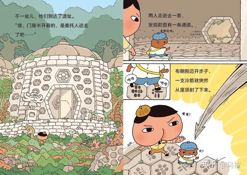屁屁侦探和助手布朗先搭火车,再搭船前往目的地——闷热的热带雨林里一座快要崩塌的遗址,据说那是很久以前的人们为了保护重要的东西而兴建的,里面布满各种机关陷阱,因此没有人敢随意靠近。