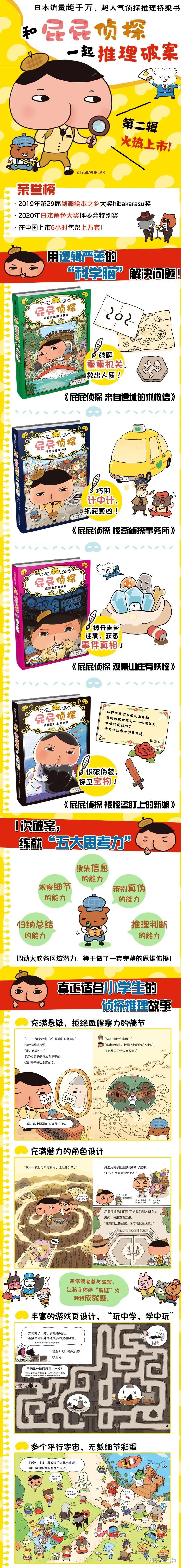 《屁屁侦探》是日本的超人气侦探推理故事,截至2021年8月,在日本国内的销量已经超过900万。包括中文在内,卖出了十几种语言的版权,已经成为全世界儿童的“偶像”。