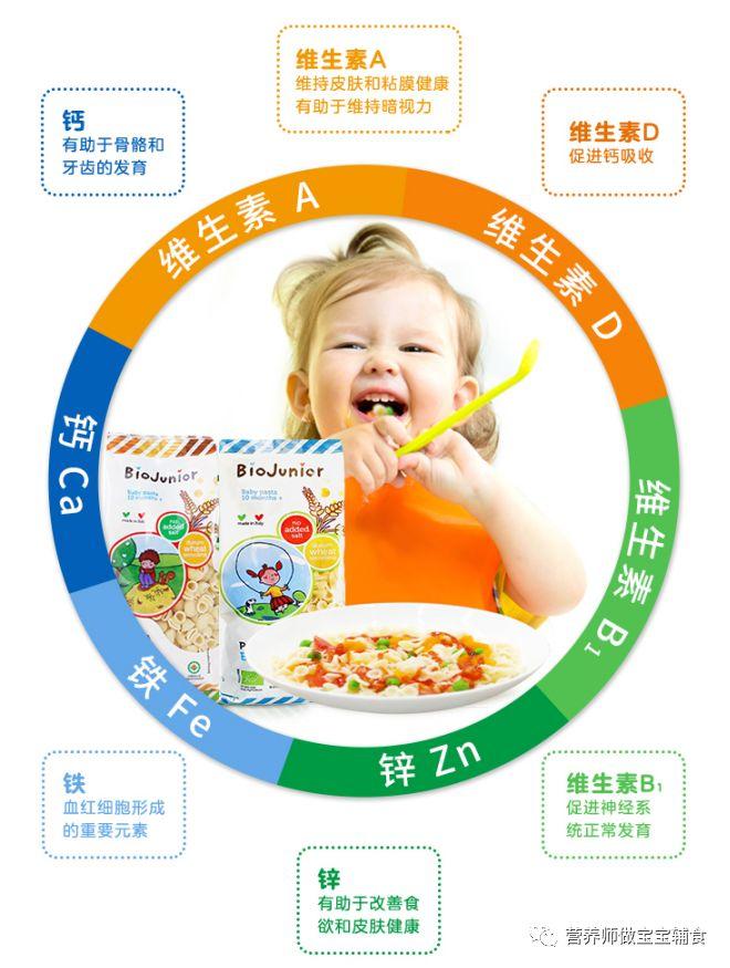 碧欧奇的宝宝意面还添加了钙、铁、锌,以及维生素A、维生素D、维生素B1等营养元素,可以给宝宝补充各种微量元素。