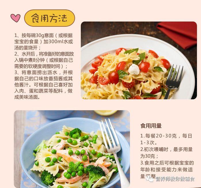 1、这款意面是由硬性小麦粉,蛋白质和面筋量都比普通面条高,所以同样的煮面时间,它没有普通面条软烂,但更有嚼劲;2岁以上,咀嚼能力好的宝宝,直接将意面扔进微沸的水里,煮10~15分钟左右,将煮熟的意面捞起来,然后搭配一些蔬菜,鱼蛋肉类,既营养又好吃;2岁以下的宝宝,咀嚼能力弱的话,建议先用冷水浸泡20分钟,再沸水入锅煮15分钟;