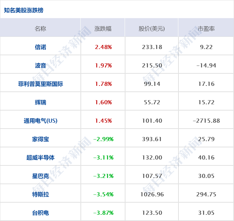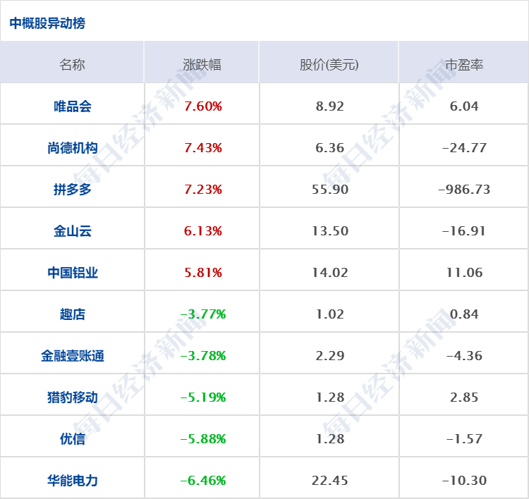 1月8日,美股三大指数集体收跌,道指跌0.01%,本周累跌0.29%;标普500指数跌0.41%,本周累跌1.87%;纳指跌0.96%,本周累跌4.53%。半导体板块下挫,赛灵思、先科电子跌超5%,日月光半导体、芯科实验室跌超4%。特斯拉、英伟达跌超3%。热门中概股多数上涨,拼多多、唯品会涨超7%,爱奇艺涨超4%,理想汽车、阿里巴巴、京东涨超2%,百度、欢聚涨超1%。小鹏汽车跌超3%,滴滴跌超4%。