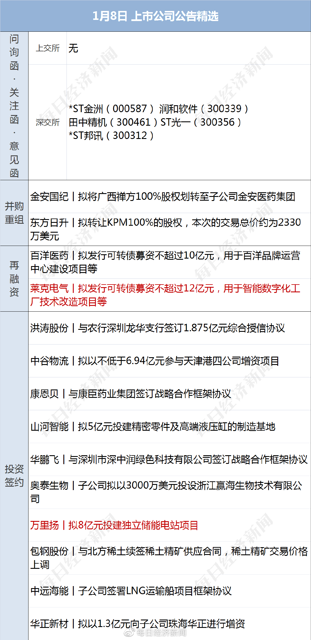 NO.1 信中利:针对有媒体报道百亿私募信中利资本控制人汪潮涌(身份证姓名汪超涌)在37天拘留期满后,于2022年1月6日取保候审的消息,1月7日晚间,信中利发布公告称,公司已与实际控制人汪潮涌先生取得联系,确认其失联期间配合公安机关调查。截至公告披露日,汪超涌已经正常履职,公司经营情况正常。就在当天,汪潮涌还在其朋友圈一口气发了近10条消息,均为信中利资本公司的新闻。