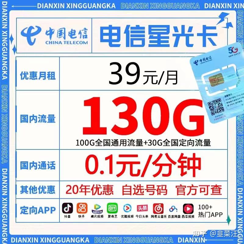 【永久】电信星辰卡-20年优惠 |39元120G全国流量+100分钟国内通话 +首月0元| *** 申请!!