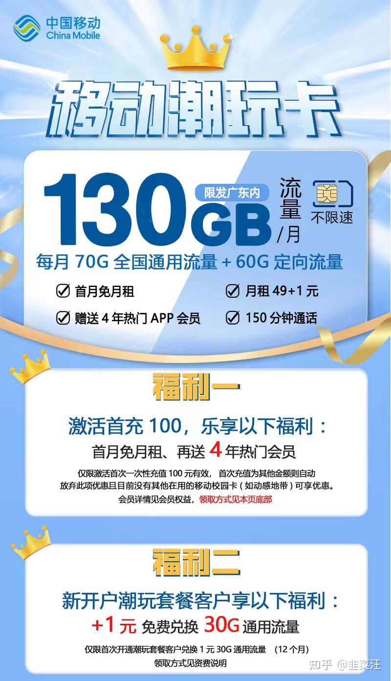 潮玩卡:50元、70GB通用、60GB定向、150分钟通话、48个月会员;