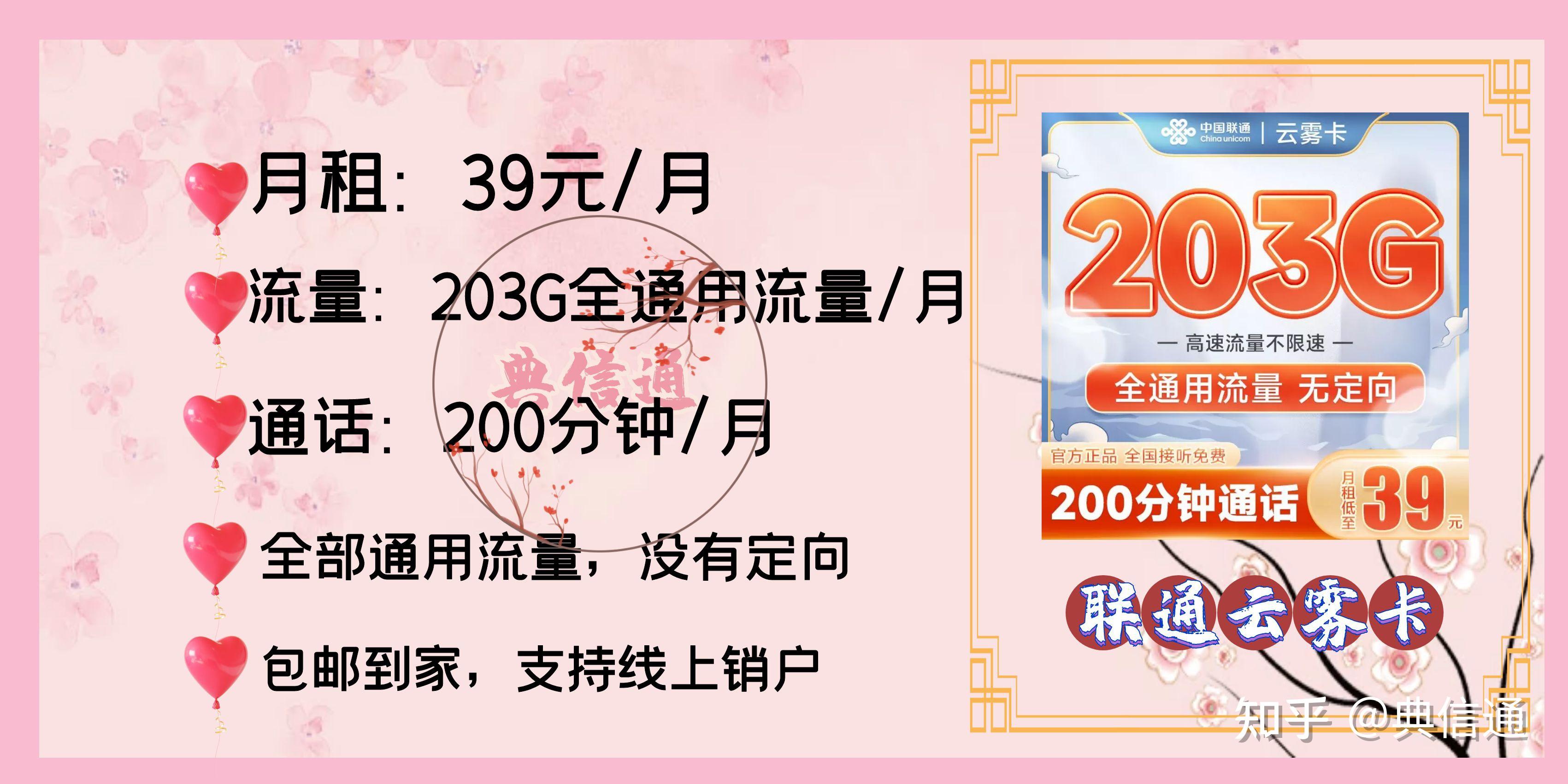 第六款联通云雾卡:39月租=203G全国通用流量+200分钟通话(短期福利,可随时线上销户)