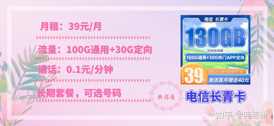电信长期130G长青卡免费领取地址--可选号月租:39元(首月免费)