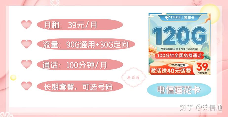 电信长期120G+100分钟莲花卡免费领取地址--可选号月租:39元(首月免费)
