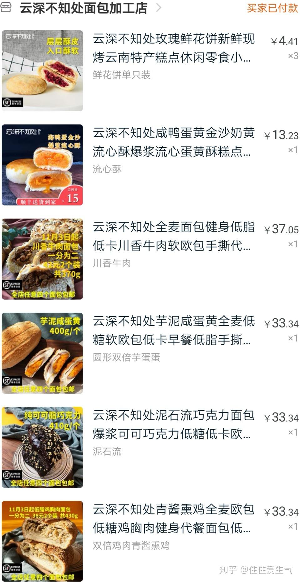 鲜花饼我是冷冻了吃的,又酥又脆简直了,鲜花馅儿也不会甜得过分,评论里说怪不得有人专门付运费买鲜花饼,确实值得;流心酥买就vans,根本舍不得分享,不过热量不低;川香牛肉的之前踩过雷,这个非常OK,牛肉很嫩,辣度适中,分成两个也很贴心;芋蛋蛋的一怕腥气二怕油,他家做得蛮好,甜咸党很幸福,就是量大,容易腻;泥石流的巧克力爱好者必吃,无敌满足;熏鸡的店内销量之一,面包皮不咋的,韧度够但不松软,鸡肉馅儿非常优秀,建议店家单卖鸡肉= =+。