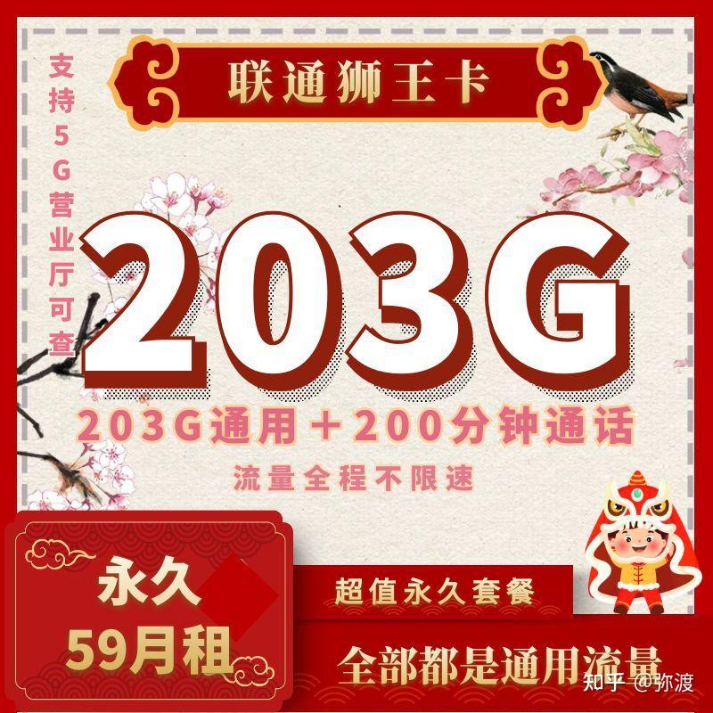 套餐详情:59包203G通用流量+200分钟通话(不限速,无定向,支持4/5G、两年优惠后无异议自动续约)首月不折算,流量全部到账!