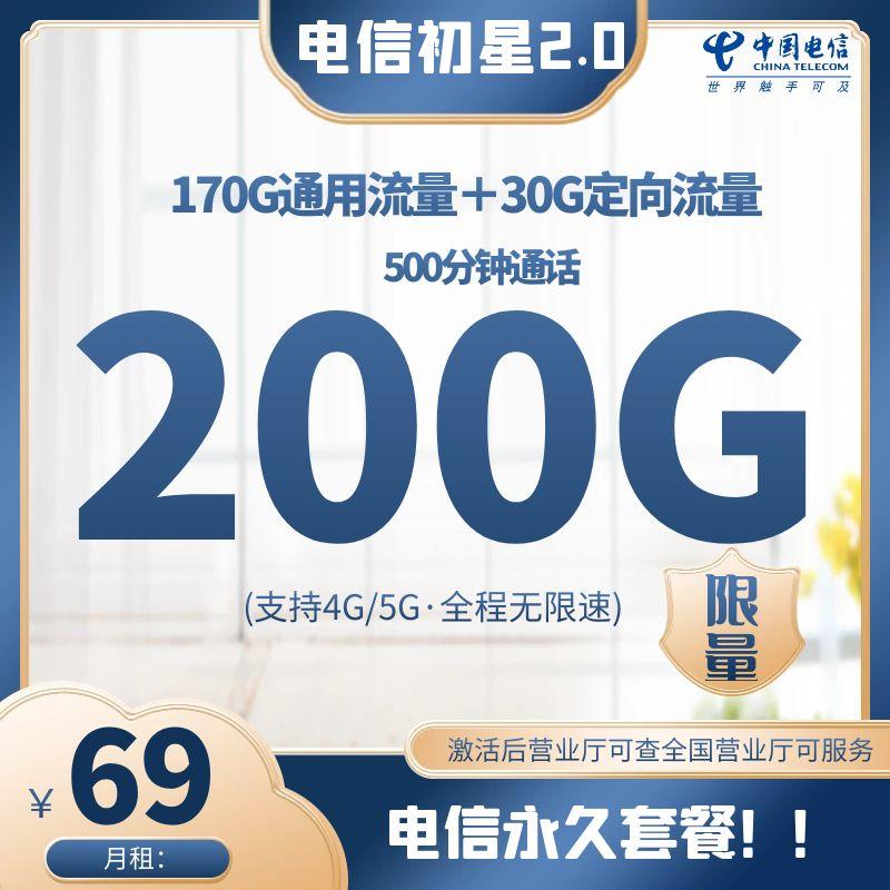 全是通用流量、200分钟通话、协议期无、支持4G/5G、流量全程不限速