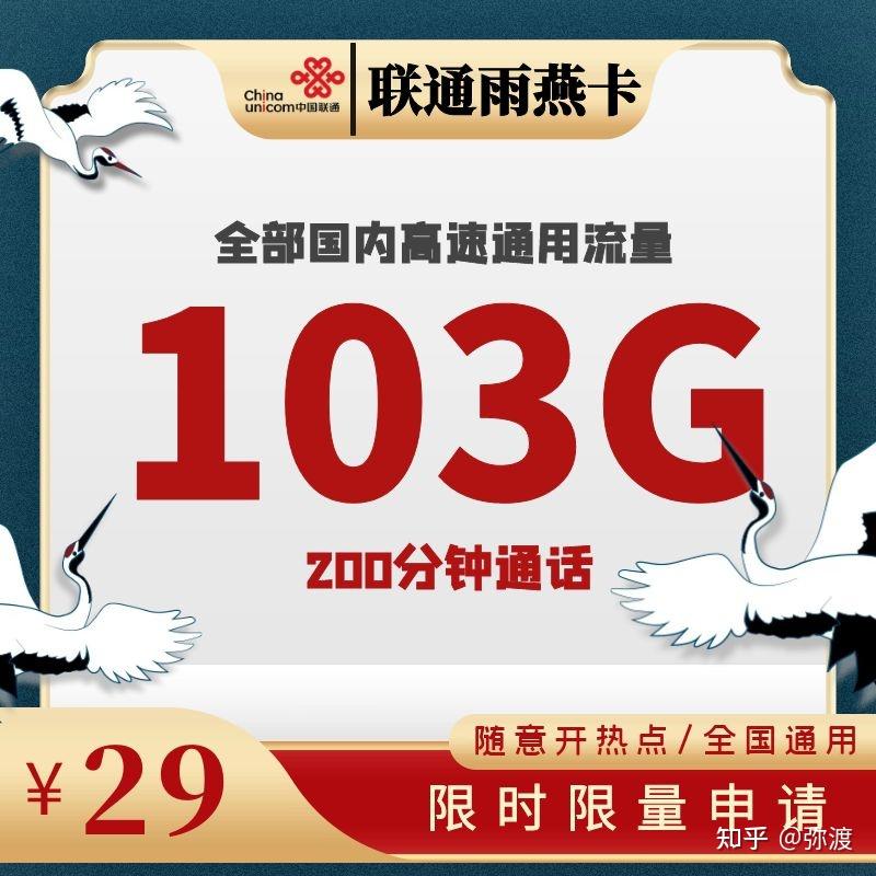 每月自动减免35元(24个月有效)综上:联通雨燕套餐29元/103G通用流量+200分钟通话(两年)
