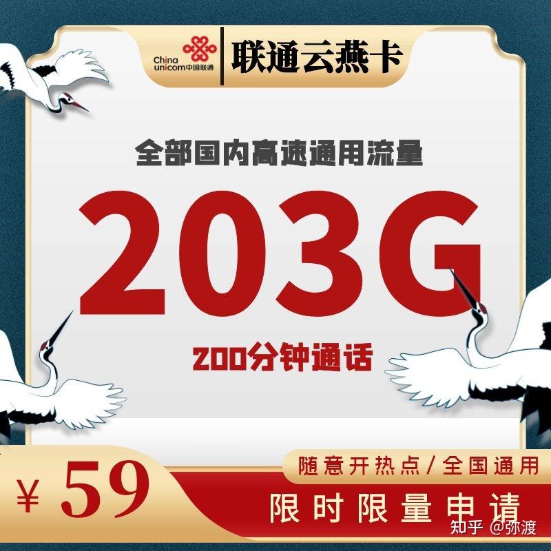 每月月底赠送5元话费(24个月有效)综上:实现联通云燕卡 套餐59月租包203G国内高速流量+200分钟通话(两年)