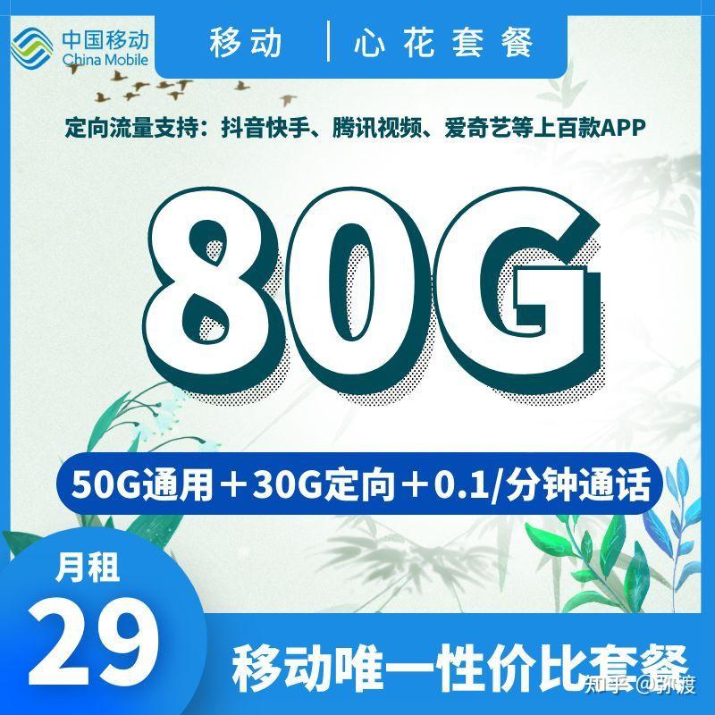 · 移动心花卡套餐/29元包50G通用流量+30定向流量+首月免费
