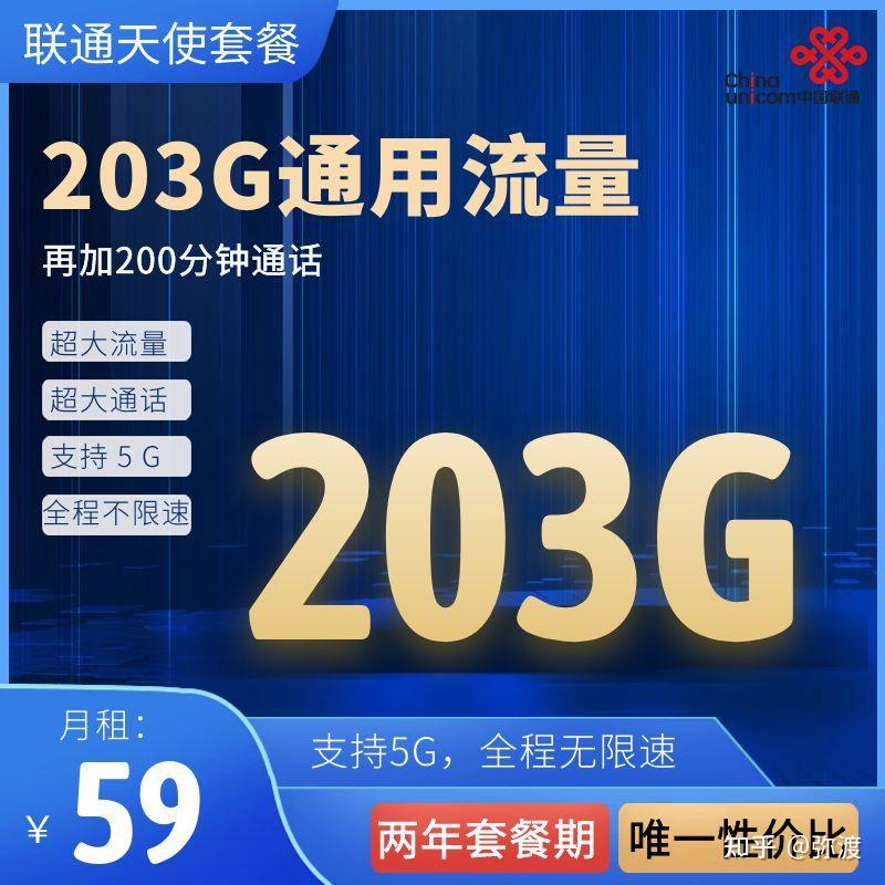 · 联通天使卡套餐/59元203G全国通用流量+200分钟通话+0.15元/分钟