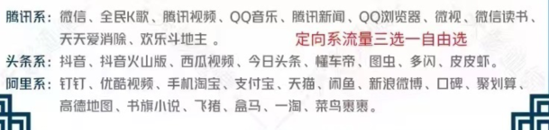 定向流量支持抖音、快手、爱奇艺、通讯视频等上百款app。