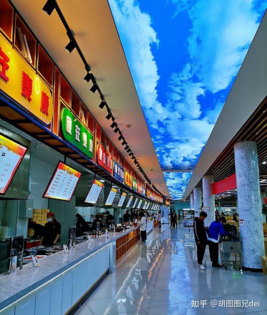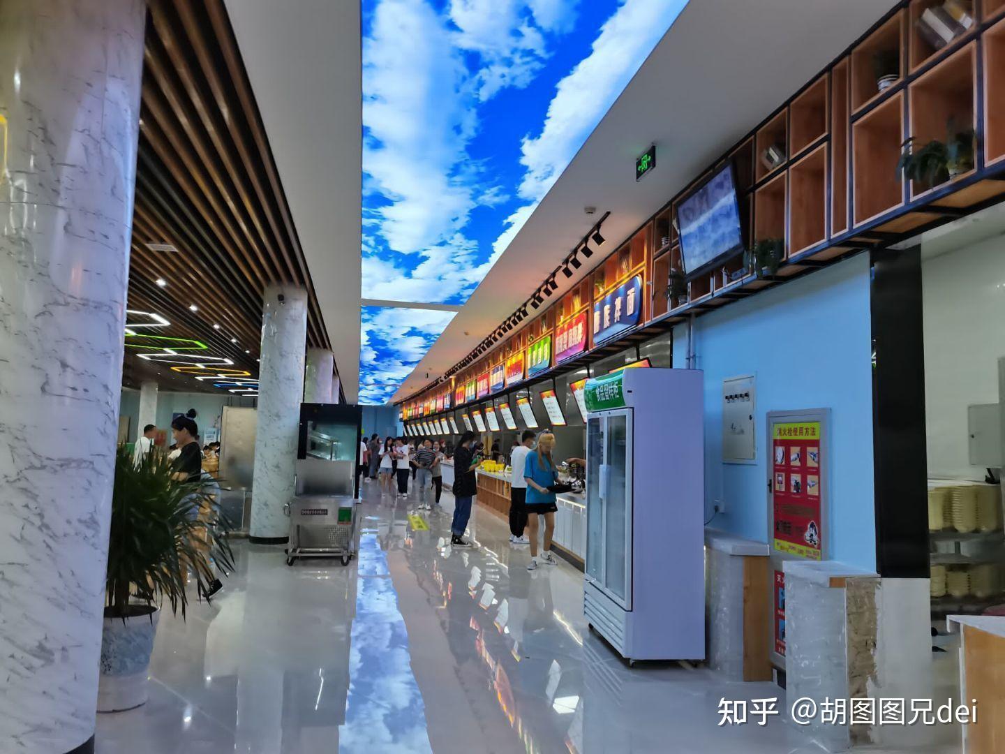学校有一个食堂,有三层楼,一层是学校开的去年新装修的看着可好看了,二层是自营的,三层聚会什么的都可以去。价格都不是很贵,算是平价吧,有的米饭不够了还可以免费加米;自助小火锅,奶茶汉堡什么的这些都有,品类还是挺多的,吃起来个人感觉挺好的,就是吃久了,感觉吃来吃去还是那几样,啊哈哈。也可以点外卖,学校对面有一个小吃街,也是非常的nice!有几张图片,略微的观赏一下吧。