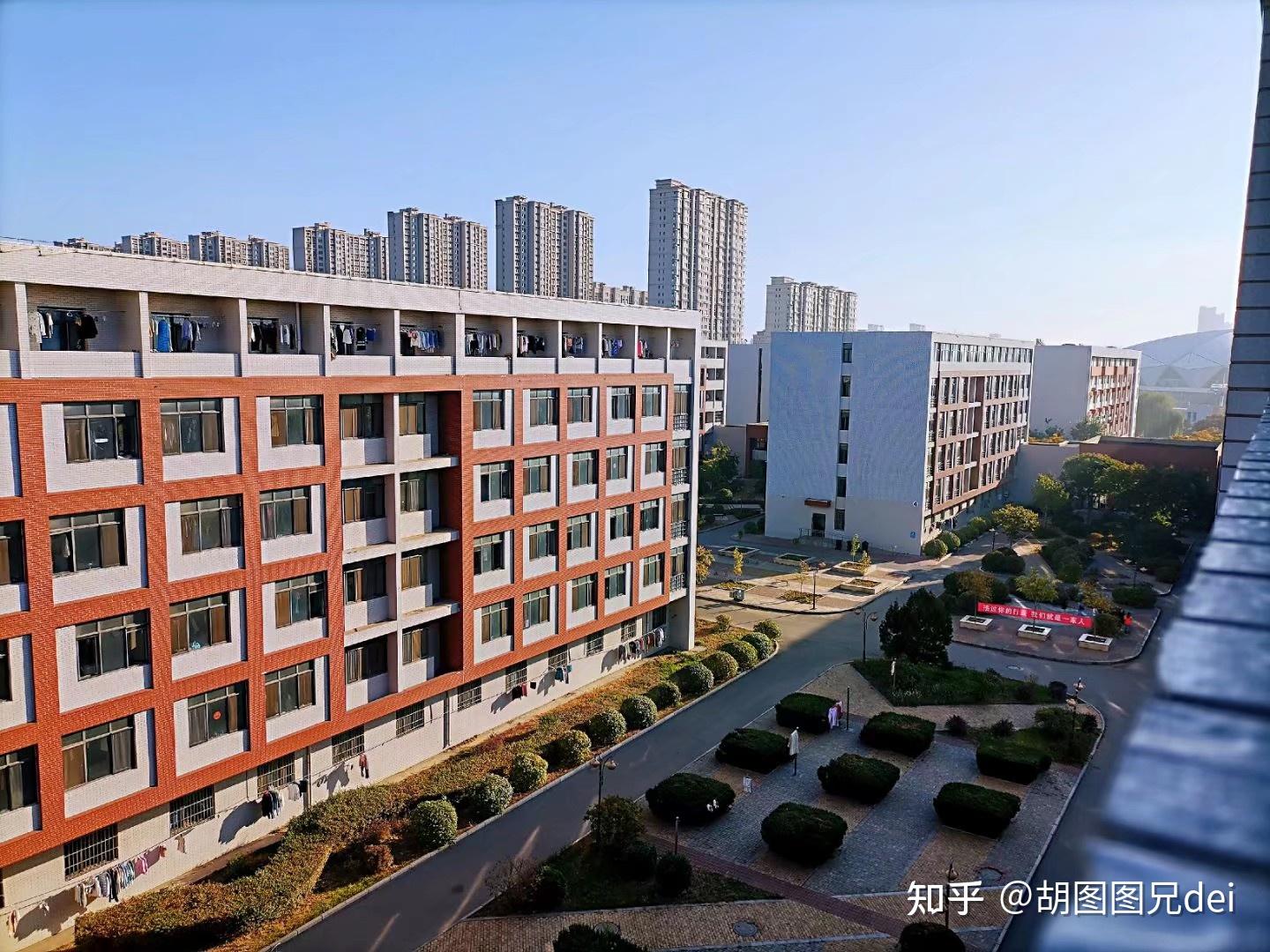 空调,独立卫浴,这些都没有。夏天只有小风扇白天某段时间还是有点小难熬的,冬天有暖气片,挺暖和的。宿舍有四人间六人间,今年估计四人间很少了,主要以六人间为主。然后关于分配,今年是学校提前分配好宿舍的,自己也就是可以提前去选一个床位,宿舍是只有床的,床垫什么的都要自己来买,这些东西学校也都有卖的。宿舍晚上十一点零五左右会断电,不可以有违规电器(大功率的电器,例如电吹风,锅什么的都是不可以的)每周会有宿工会随机检查卫生,这点要注意啊。这里附带一些宿舍的照片