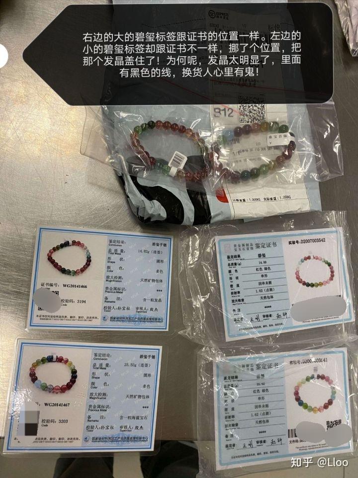 戏曲性的一幕来了,卖家收货时,拆开包裹,跟顺丰师傅说,货物不一样,让顺丰送货师傅陪着她到连云港,国家硅材料深加工产品质量*督检验中心,去检测。注意了,货物离开快递员视线了,拿到鉴定中心去鉴定了。这期间卖家和快递员一起等待了40多分钟。呵呵。货物鉴定出来后,卖家开始忙着拍照留证据了,为啥呢,因为鉴定出来2个手链里各有一个珠子不是碧玺了。小里面有一个发晶,大的里面有一个海蓝宝!小串的标签因换货人不细心,也装反了,呵呵!