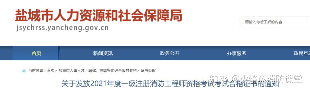 根据国家和省统一安排,盐城考区2021年度一级消防工程师资格考试合格证书定于2022年4月19日开始发放。