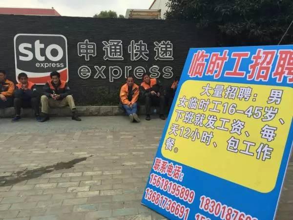 申通快递松江总部前的临时工招聘光告